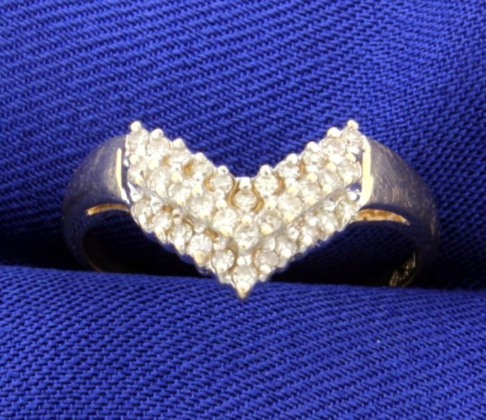In 10K yellow & white gold, there is 1/3ct total weight of diamonds that are SI clarity/ I color. Size 8 1/2 2.5g