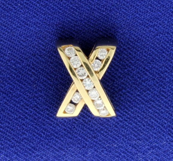 In 14K yellow gold, it is 1/2 inch long and contains eleven .03ct high quality diamonds, VS clarity/G color. 2.4g
