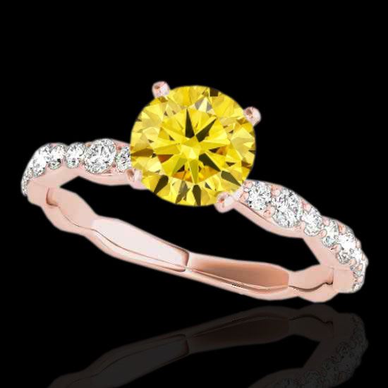 1.4 CTW Certified Si Fancy Intense Yellow Diamond Solitaire Ring 10K Rose Gold ---- Luxury Designer Brand Ring Appraised Retail Price at $10,300 ---- SKU Number US34879 10k Rose gold Ring Size is 7, Ring measuring approx. Uniform, weighing in total approx. 2.2 grams. Made in the USA and is stamped 10k, Main stone 1.00 carat total weight containing 1 pieces of Intense Fancy Yellow color with SI quality Round shape cut Diamond , Stone #2 0.4 carat total weight containing 18 pieces of H-I color with VS/SI quality Round shape cut