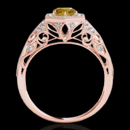 REF-236H4A -34183 ---- 1.4 CTW Certified Si/I Fancy Intense Yellow Diamond Solitaire Antique Ring 10K Rose Gold ---- Luxury Designer Brand Ring Appraised at $15,600 Certificate Number US34183 10k Rose gold, Ring Size is 7, Ring measuring approx. Uniform, weighing in total approx. 6.4 grams. Made in the USA and is stamped 10k, Main stone 1 carat total weight containing 1 pieces of Intense Fancy Yellow color with SI quality Round shape cut Diamond , Stone #2 0.4 carat total weight containing 44 pieces of H-I color with VS/SI quality Round shape cut Diamond