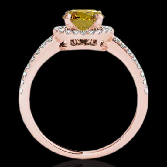 REF-254Y5K -34104 ---- 1.4 CTW Certified Si/I Fancy Intense Yellow Diamond Solitaire Halo Ring 10K Rose Gold ---- Luxury Designer Brand Ring Appraised at $16,800 Certificate Number US34104 10k Rose gold, Ring Size is 7, Ring measuring approx. Uniform, weighing in total approx. 3.7 grams. Made in the USA and is stamped 10k, Main stone 1 carat total weight containing 1 pieces of Intense Fancy Yellow color with SI quality Round shape cut Diamond , Stone #2 0.4 carat total weight containing 38 pieces of H-I color with VS/SI quality Round shape cut Diamond