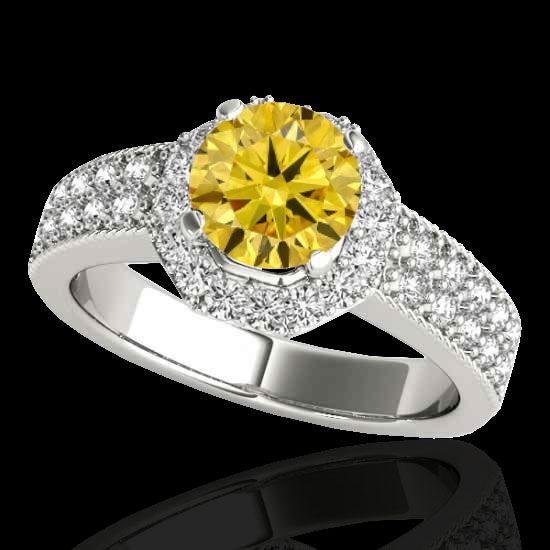 REF-172X5T -34556 ---- 1.4 CTW Certified Si/I Fancy Intense Yellow Diamond Solitaire Halo Ring 10K White Gold ---- Luxury Designer Brand Ring Appraised at $11,400 Certificate Number US34556 10k White gold, Ring Size is 7, Ring measuring approx. Uniform, weighing in total approx. 6.5 grams. Made in the USA and is stamped 10k, Main stone 1 carat total weight containing 1 pieces of Intense Fancy Yellow color with SI quality Round shape cut Diamond , Stone #2 0.4 carat total weight containing 36 pieces of H-I color with VS/SI quality Round shape cut Diamond