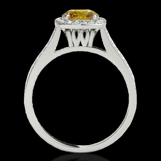 REF-227A3X -34191 ---- 1.4 CTW Certified Si/I Fancy Intense Yellow Diamond Solitaire Halo Ring 10K White Gold ---- Luxury Designer Brand Ring Appraised at $15,000 Certificate Number US34191  10k White gold,  Ring Size is 7, Ring measuring approx. Uniform, weighing in total approx. 3.4 grams. Made in the USA and is stamped 10k, Main stone 1 carat total weight containing 1 pieces of Intense Fancy Yellow color with SI  quality Round shape cut Diamond , Stone #2 0.4 carat total weight containing 38 pieces of H-I color with  VS/SI quality Round shape cut Diamond