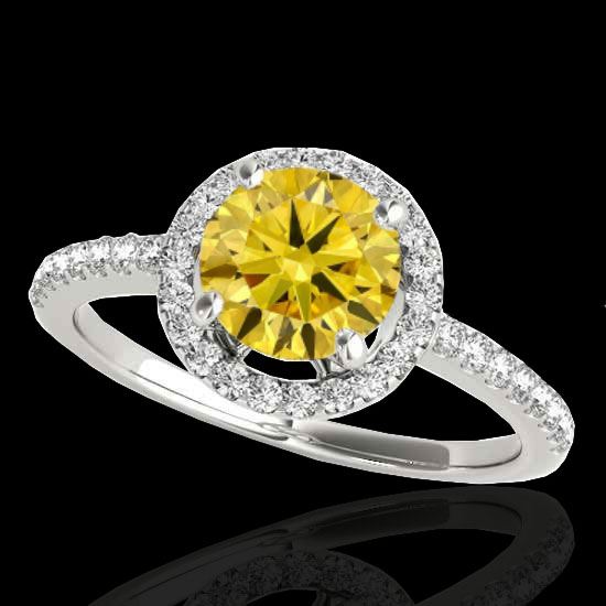 REF-254T5M -34103 ---- 1.4 CTW Certified Si/I Fancy Intense Yellow Diamond Solitaire Halo Ring 10K White Gold ---- Luxury Designer Brand Ring Appraised at $16,800 Certificate Number US34103 10k White gold, Ring Size is 7, Ring measuring approx. Uniform, weighing in total approx. 3.7 grams. Made in the USA and is stamped 10k, Main stone 1 carat total weight containing 1 pieces of Intense Fancy Yellow color with SI quality Round shape cut Diamond , Stone #2 0.4 carat total weight containing 38 pieces of H-I color with VS/SI quality Round shape cut Diamond