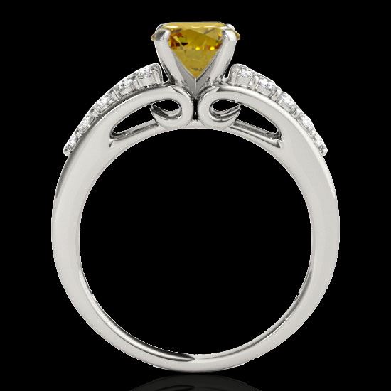 REF-218K2W -35003 ---- 1.4 CTW Certified Si/I Fancy Intense Yellow Diamond Solitaire Ring 10K White Gold ---- Luxury Designer Brand Ring Appraised at $14,400 Certificate Number US35003 10k White gold, Ring Size is 7, Ring measuring approx. Uniform, weighing in total approx. 4.3 grams. Made in the USA and is stamped 10k, Main stone 1 carat total weight containing 1 pieces of Intense Fancy Yellow color with SI quality Round shape cut Diamond , Stone #2 0.4 carat total weight containing 12 pieces of H-I color with VS/SI quality Round shape cut Diamond