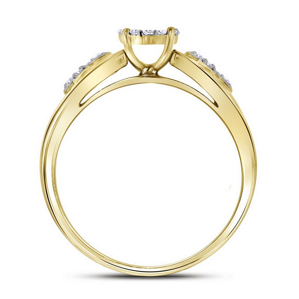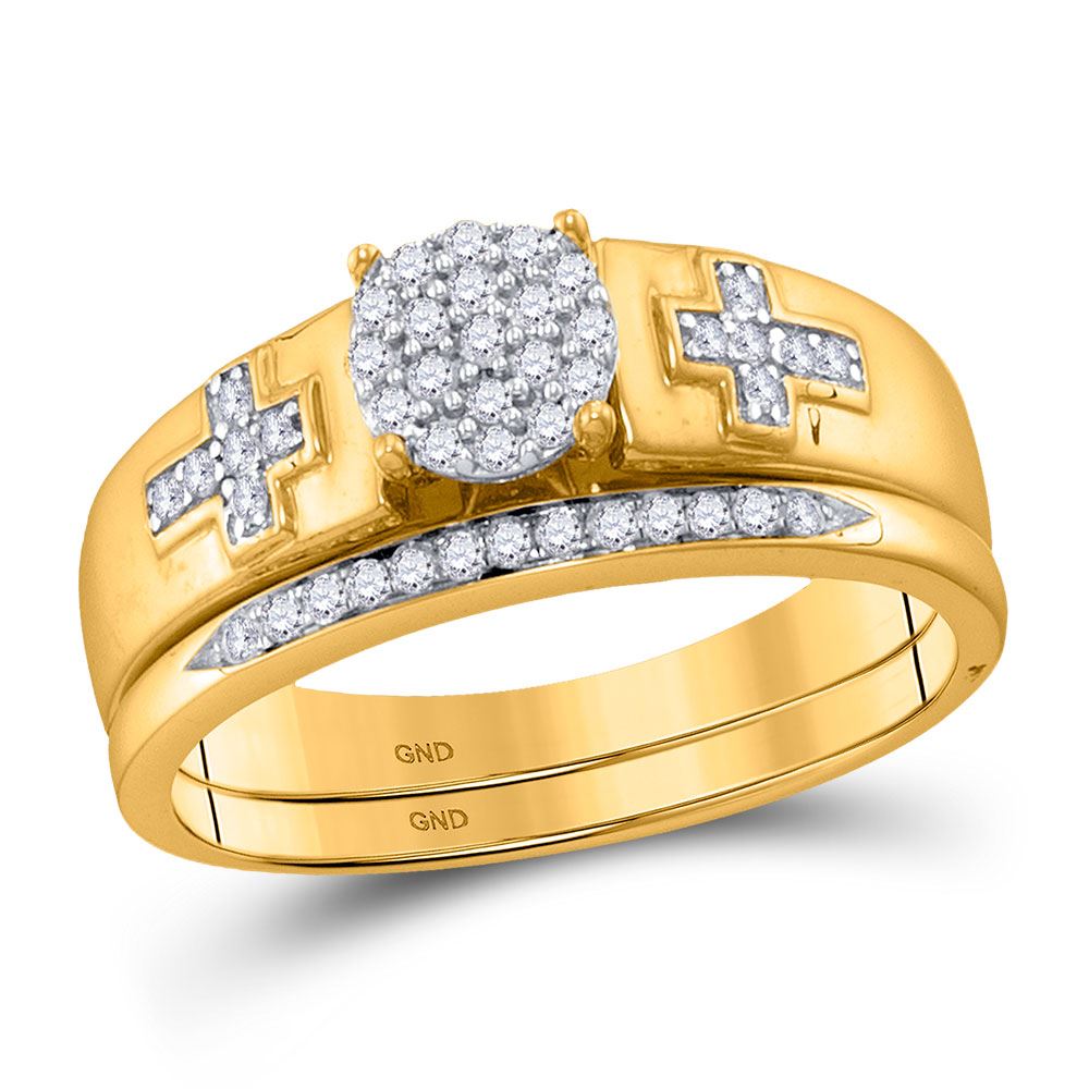 10kt Yellow Gold Womens Diamond Cluster Cross Bridal Wedding Engagement Ring Band Set 1/4 Cttw