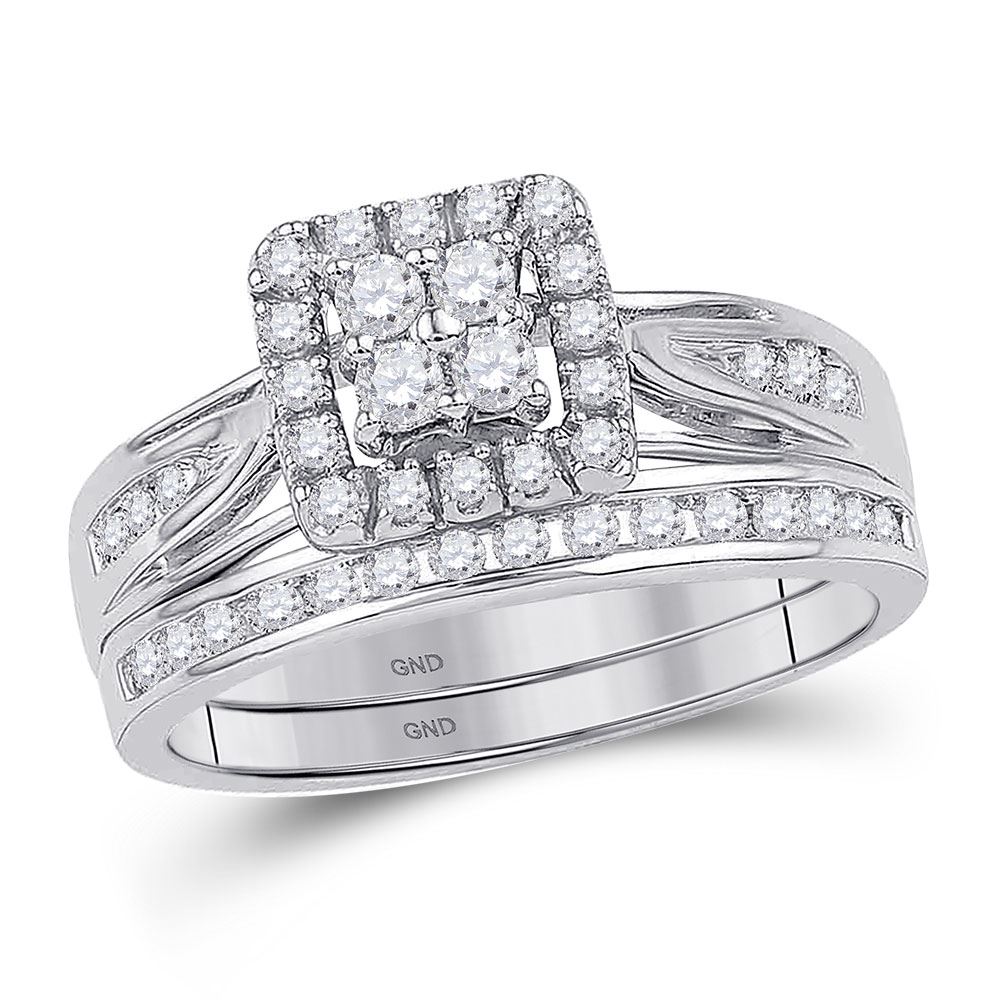 REF-43V2Y - 1/4 CTW Diamond Square Cluster Bridal Wedding Ring 10kt White Gold - REF-43V2Y