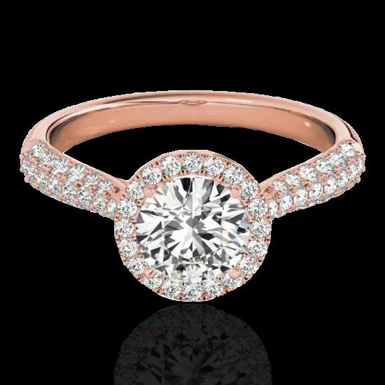 REF-170N4Y -33299 ---- 1.4 CTW H-SI/I Certified Diamond Solitaire Halo Ring 10K Rose Gold ---- Luxury Designer Brand Ring Appraised at $10,300 Certificate Number US33299 10k Rose gold, Ring Size is 7, Ring measuring approx. Uniform, weighing in total approx. 3.7 grams. Made in the USA and is stamped 10k, Main stone 1 carat total weight containing 1 pieces of H-I color with SI/I quality Round shape cut Diamond , Stone #2 0.4 carat total weight containing 58 pieces of H-I color with VS/SI quality Round shape cut Diamond