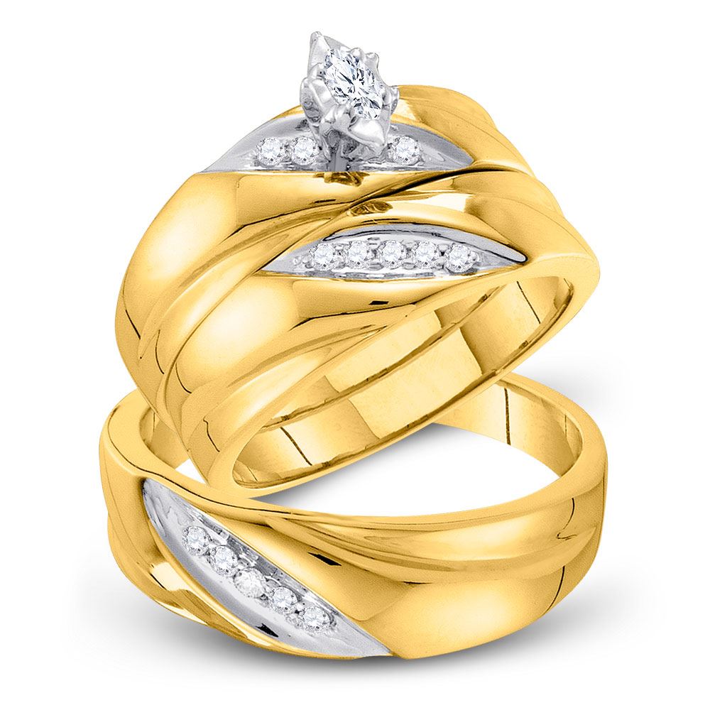 REF-45W2H - 1/4 CTW His Hers Marquise Diamond Solitaire Matching Wedding Set 10kt Yellow Gold - REF-45W2H