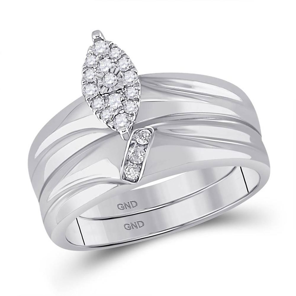 10kt White Gold His & Hers Round Diamond Cluster Matching Bridal Wedding Ring Band Set 1/4 Cttw