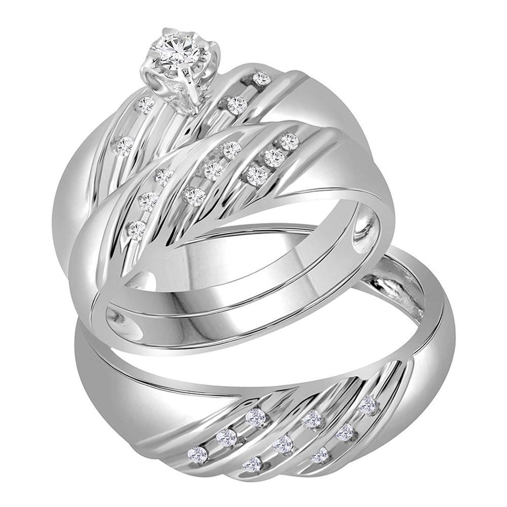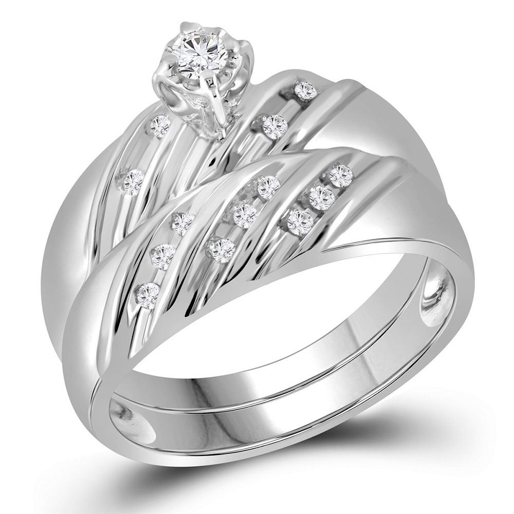 REF-71T9K ---- 1/4 CTW His & Hers Round Diamond Round Matching Bridal Wedding Ring 14kt White Gold