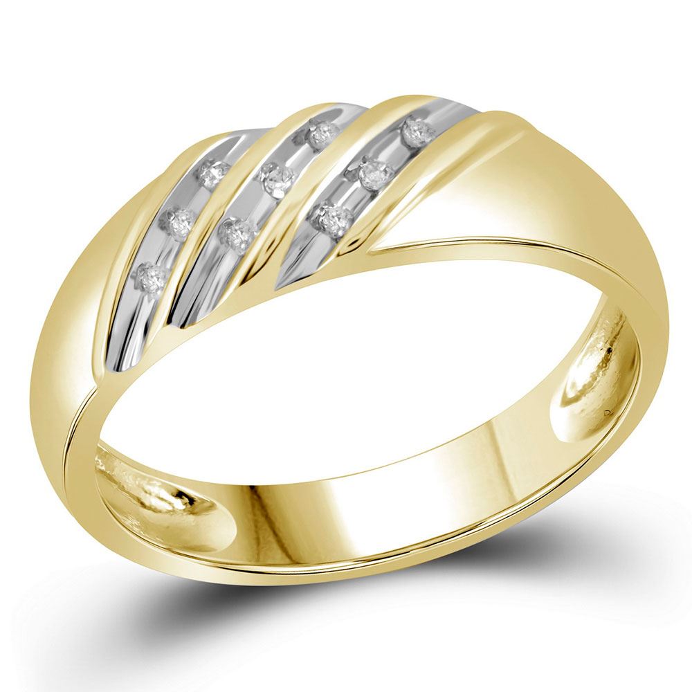 14kt Yellow Gold His & Hers Round Diamond Round Matching Bridal Wedding Ring Band Set 1/4 Cttw