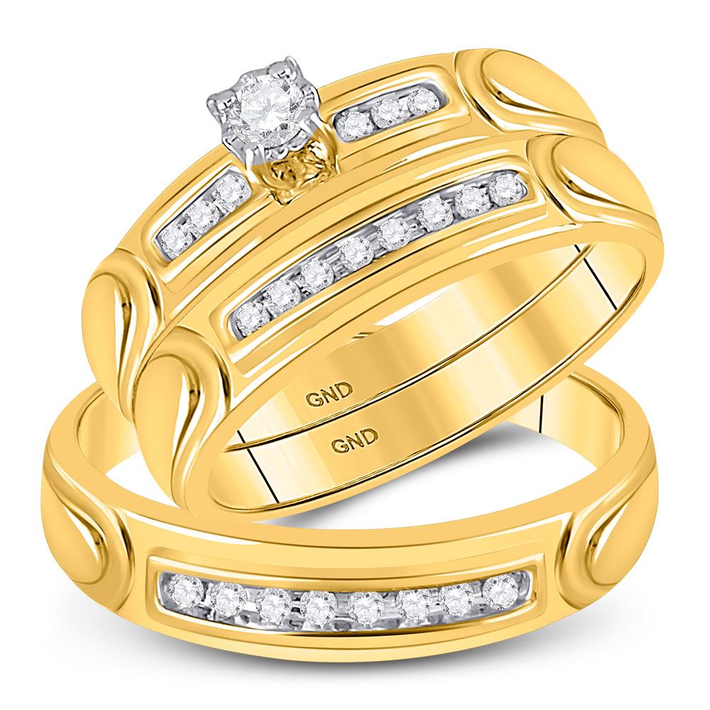 REF-44N2A - 1/4 CTW His Hers Round Diamond Solitaire Matching Wedding Set 10kt Yellow Gold - REF-44N2A
