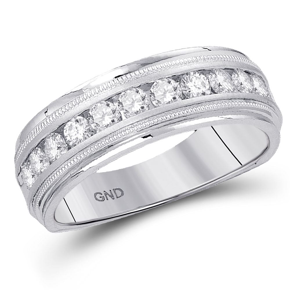 REF-35N9Y ---- 1/4 CTW Mens Machine Set Round Diamond Wedding Channel Ring 10kt White Gold