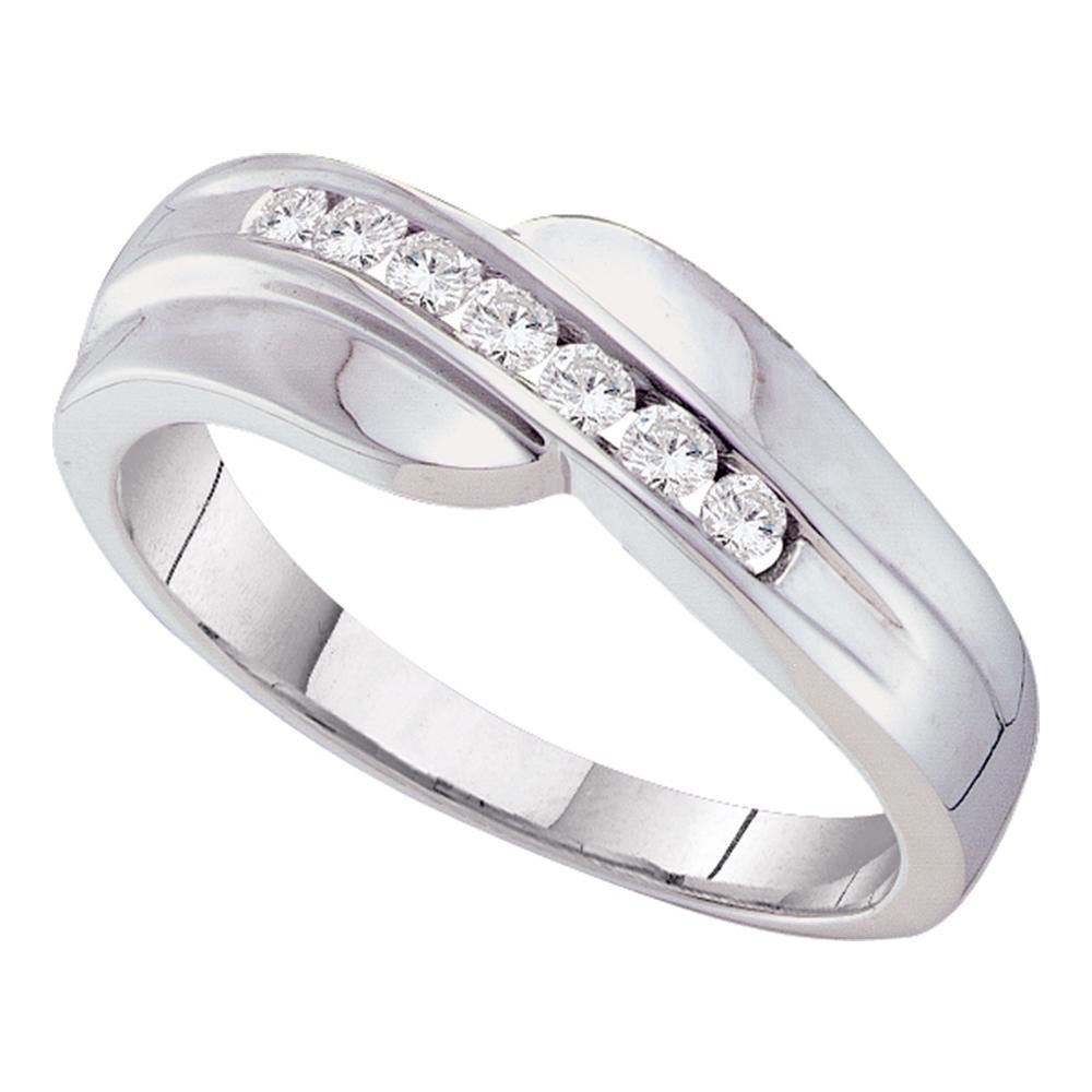 14kt White Gold Mens Round Channel-set Diamond Curved Wedding Band Ring 1/4 Cttw