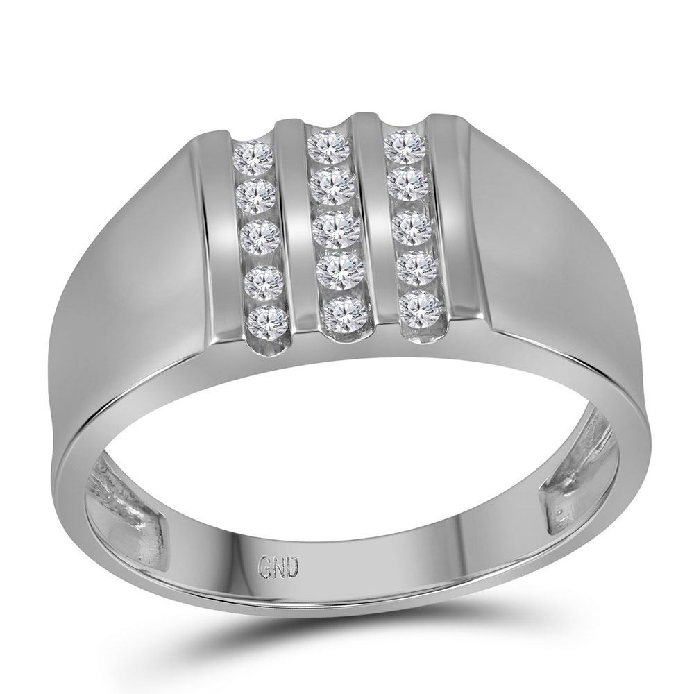 REF-24W3F ---- 1/4 CTW Mens Round Channel-set Diamond Triple Row Wedding Ring 10kt White Gold