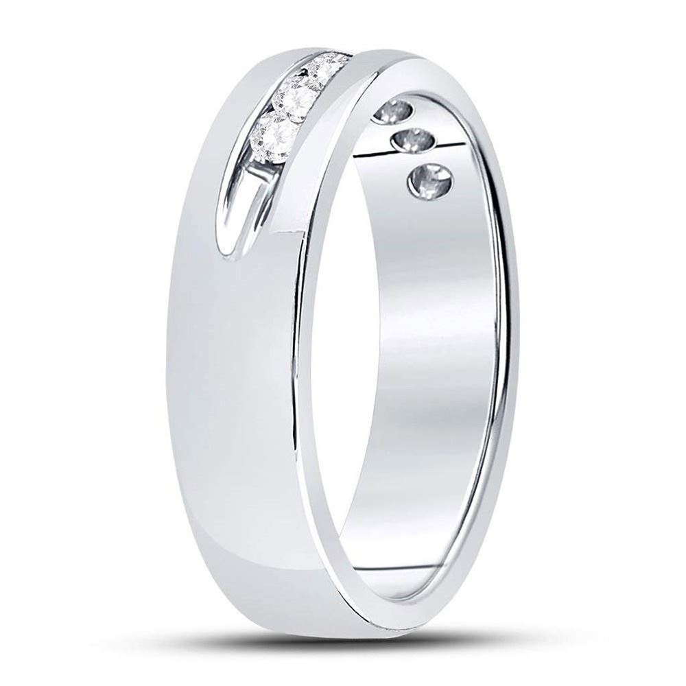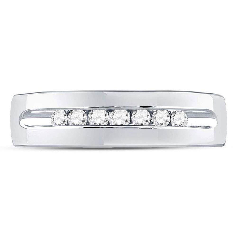 REF-57M3A ---- 1/4 CTW Mens Round Channel-set Diamond Wedding Ring 14kt White Gold