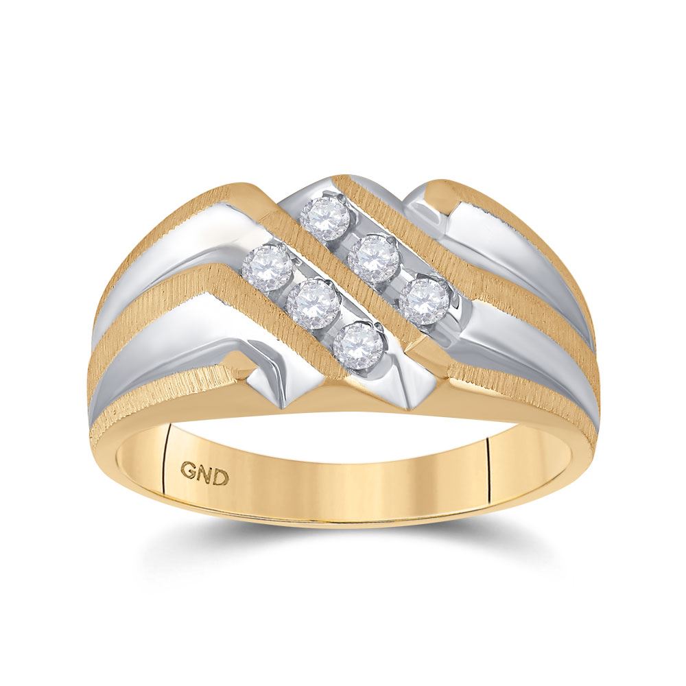 REF-29Y9N - 1/4 CTW Mens Round Diamond Band Ring 10kt Yellow Gold - REF-29Y9N