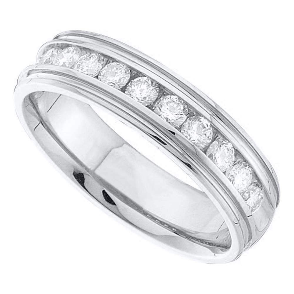REF-61N4A - 1/4 CTW Mens Round Diamond Band Ring 14k White Gold - REF-61N4A
