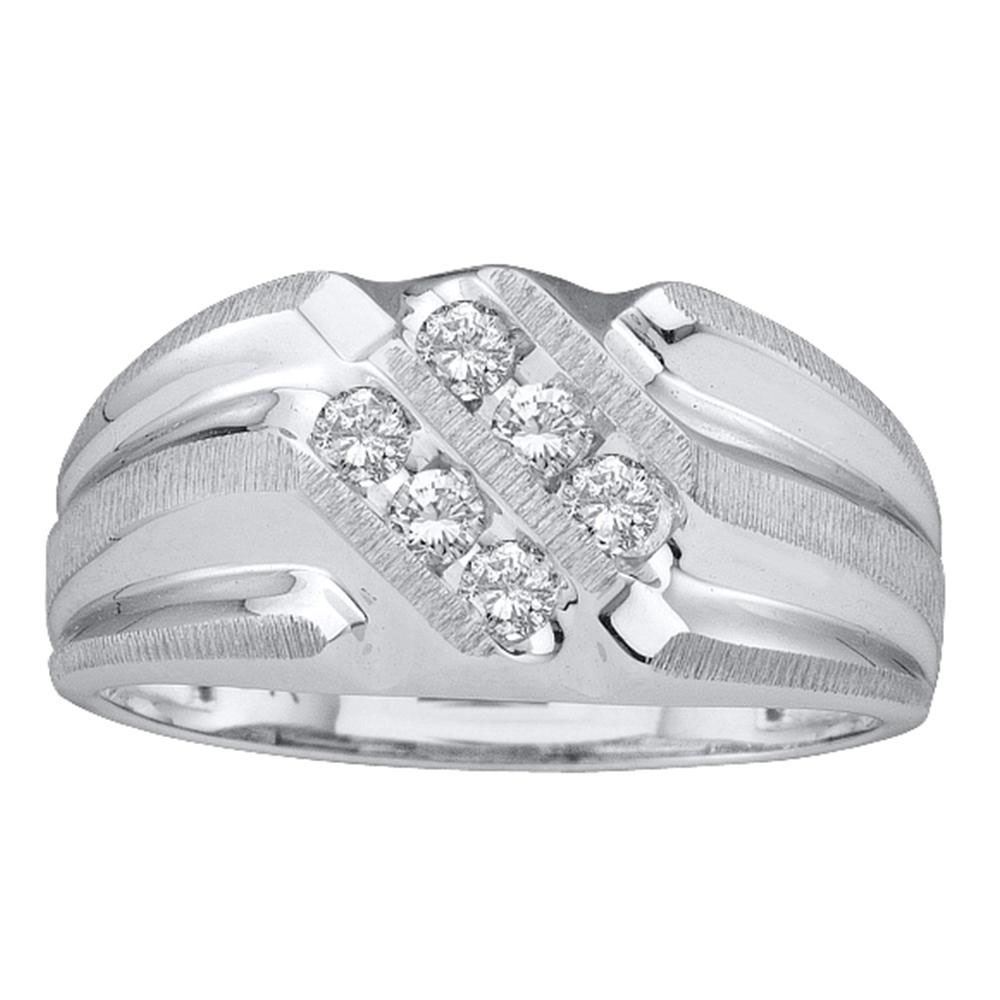 REF-36M2F - 1/4 CTW Mens Round Diamond Band Ring 14kt White Gold - REF-36M2F