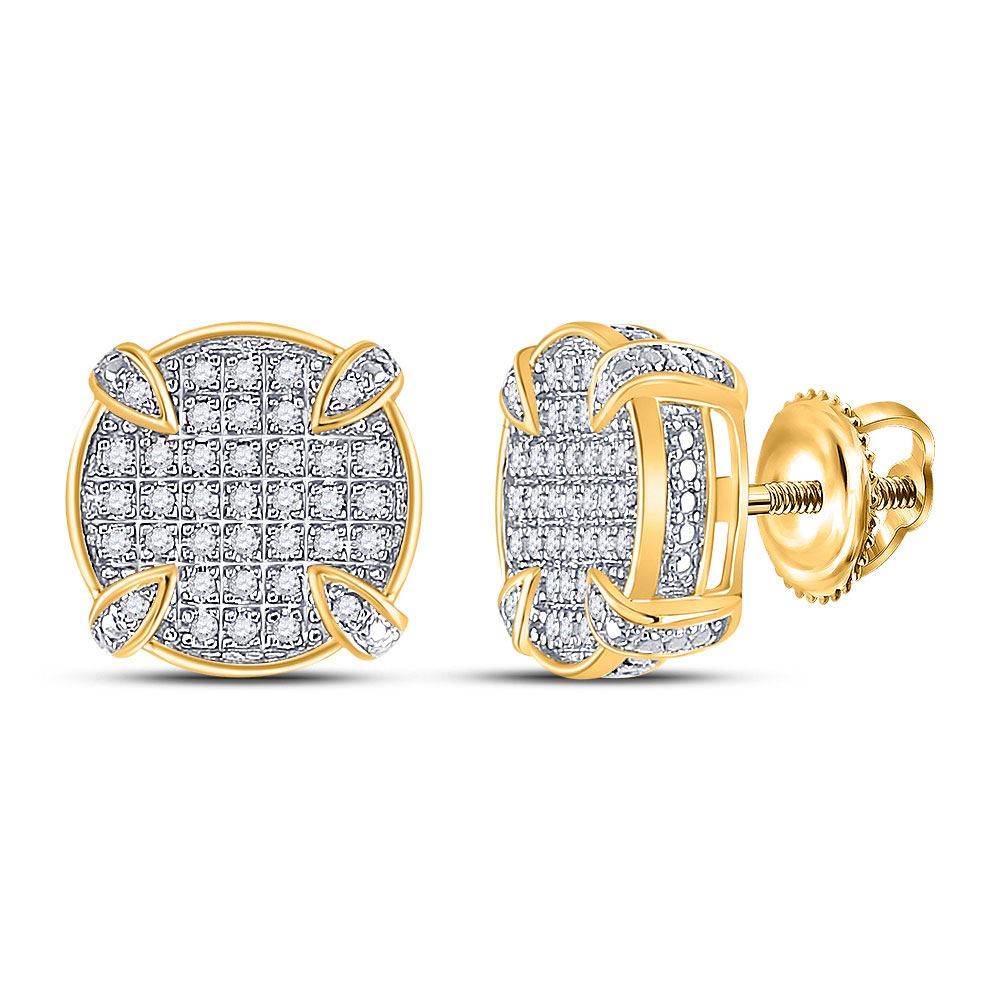 REF-28W5H - 1/4 CTW Mens Round Diamond Circle Stud Earrings 10kt Yellow Gold - REF-28W5H