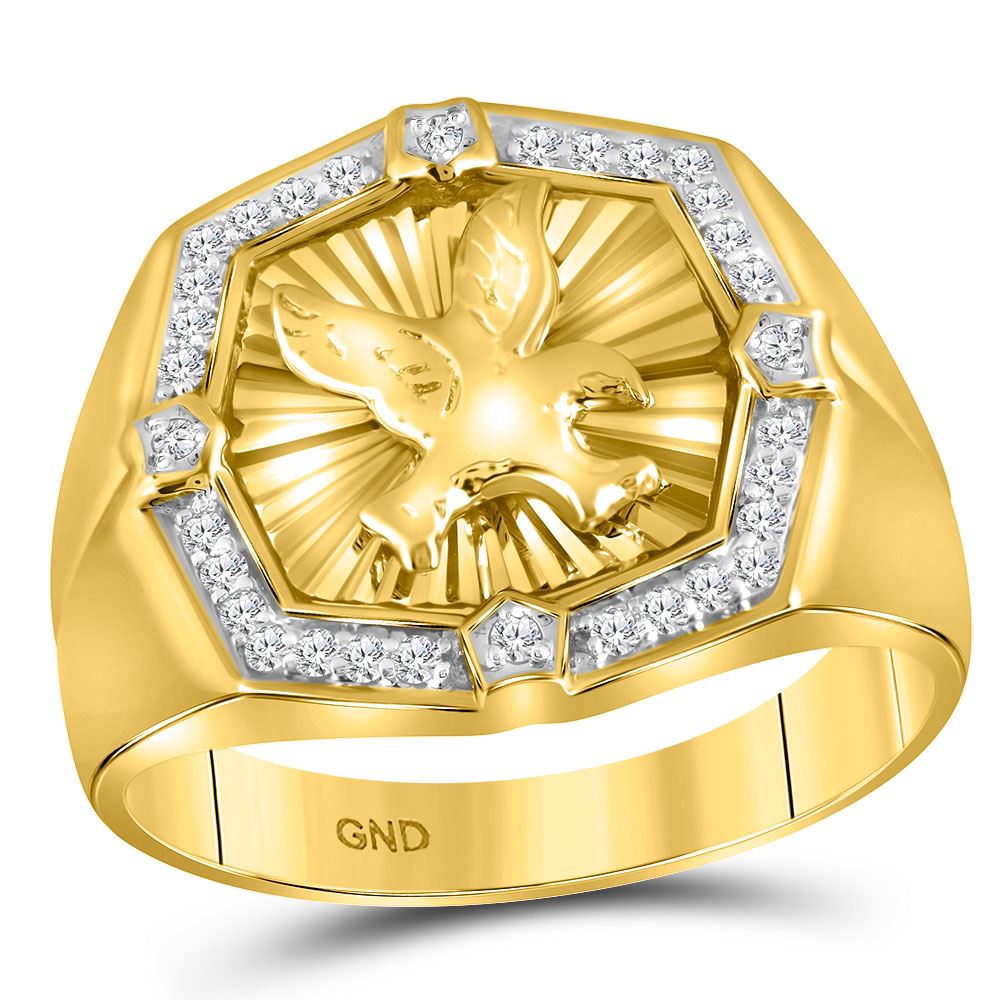 10kt Yellow Gold Mens Round Diamond Eagle Cluster Ring 1/4 Cttw