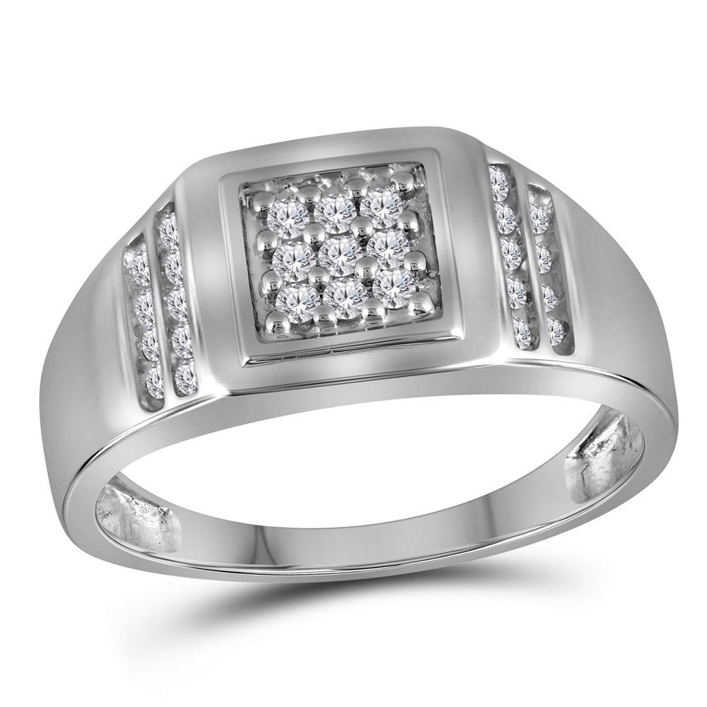 REF-18K3R ---- 1/4 CTW Mens Round Diamond Square Cluster Ring 10kt White Gold