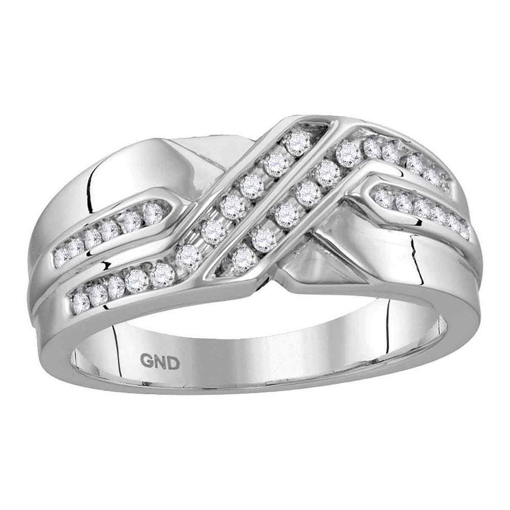 REF-39H5R - 1/4 CTW Mens Round Diamond Two Row Wedding Anniversary Band Ring 10kt White Gold - REF-39H5R