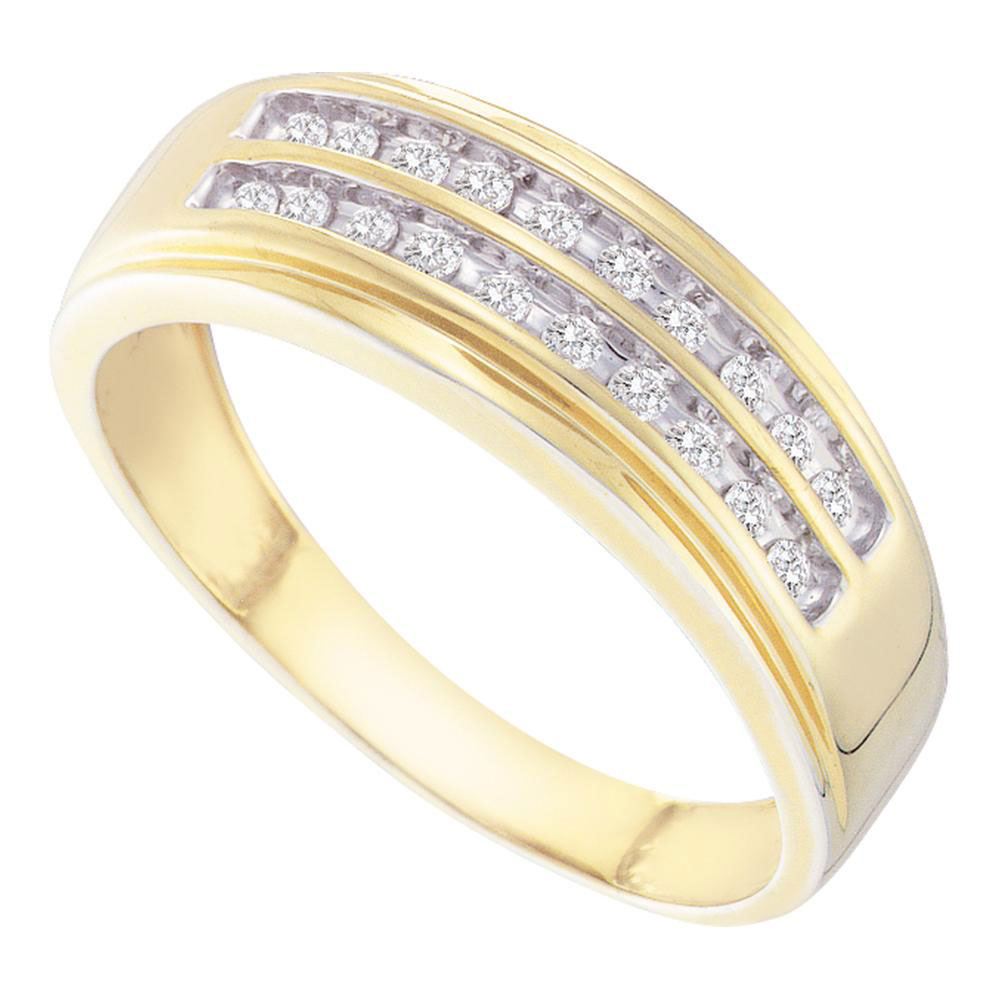 14kt Yellow Gold Mens Round Diamond Wedding 2-Row Band Ring 1/4 Cttw