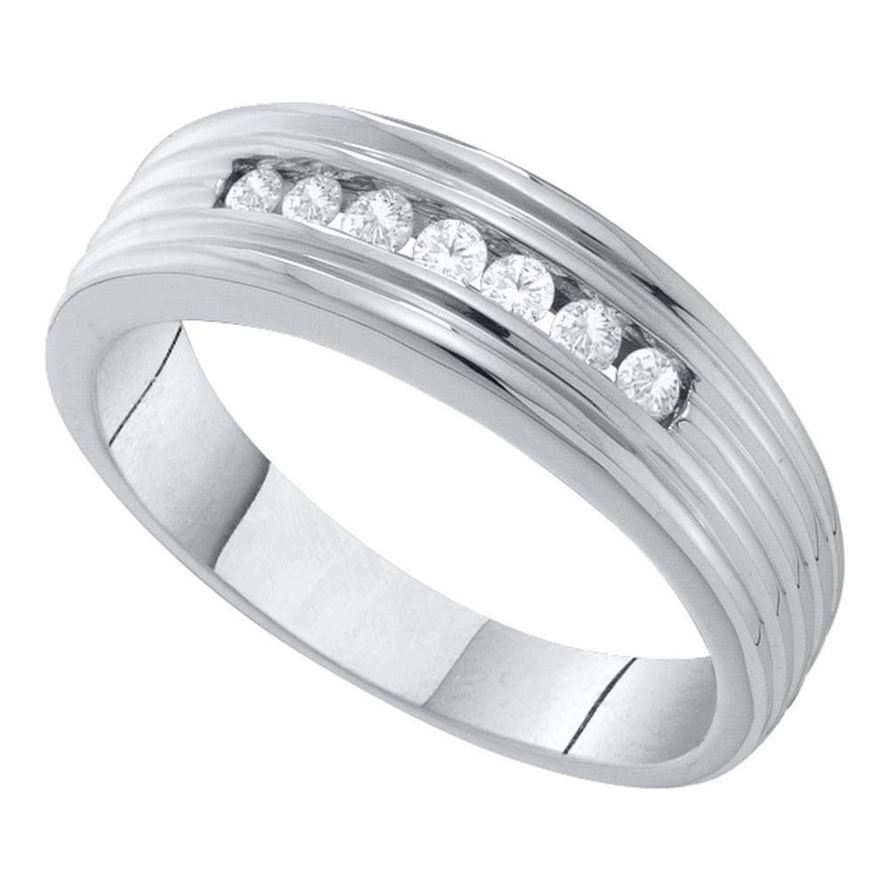 REF-34A3M - 1/4 CTW Mens Round Diamond Wedding Single Row Band Ring 10kt White Gold - REF-34A3M