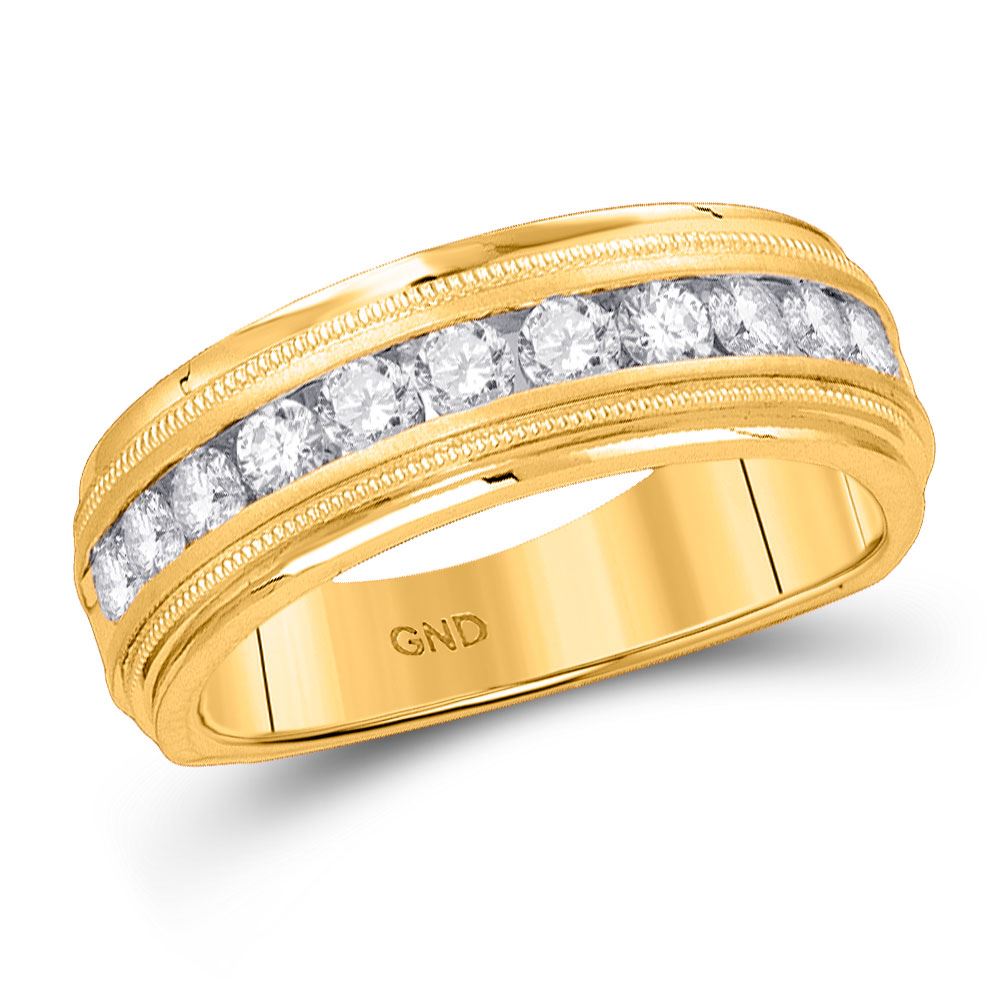 REF-46F3W - 1/4 CTW Mens Round Diamond Wedding Single Row Band Ring 10kt Yellow Gold - REF-46F3W