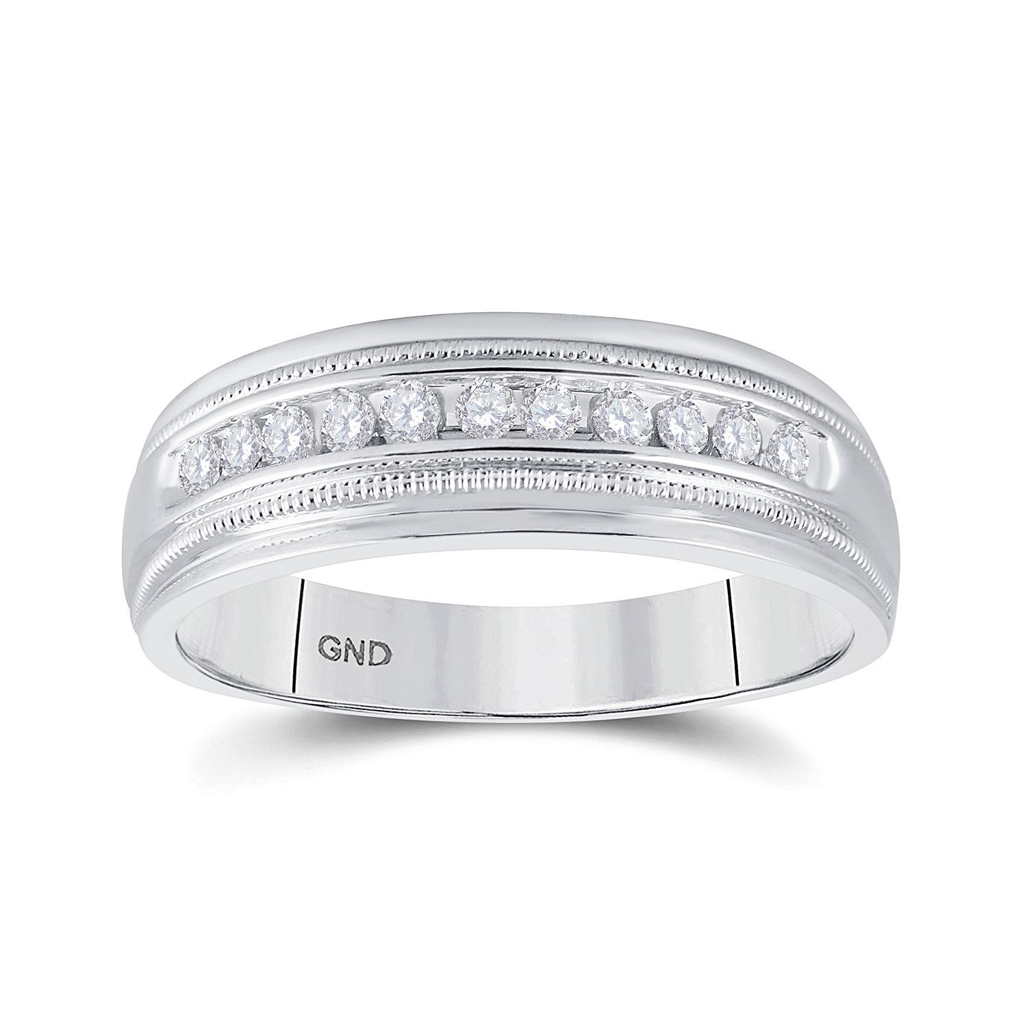 10kt White Gold Mens Round Diamond Single Row Milgrain Wedding Band Ring 1/4 Cttw