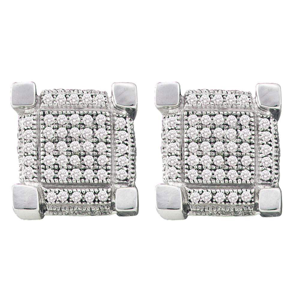 10kt White Gold Mens Round Pave-set Diamond 3D Cube Square Cluster Earrings 1/4 Cttw