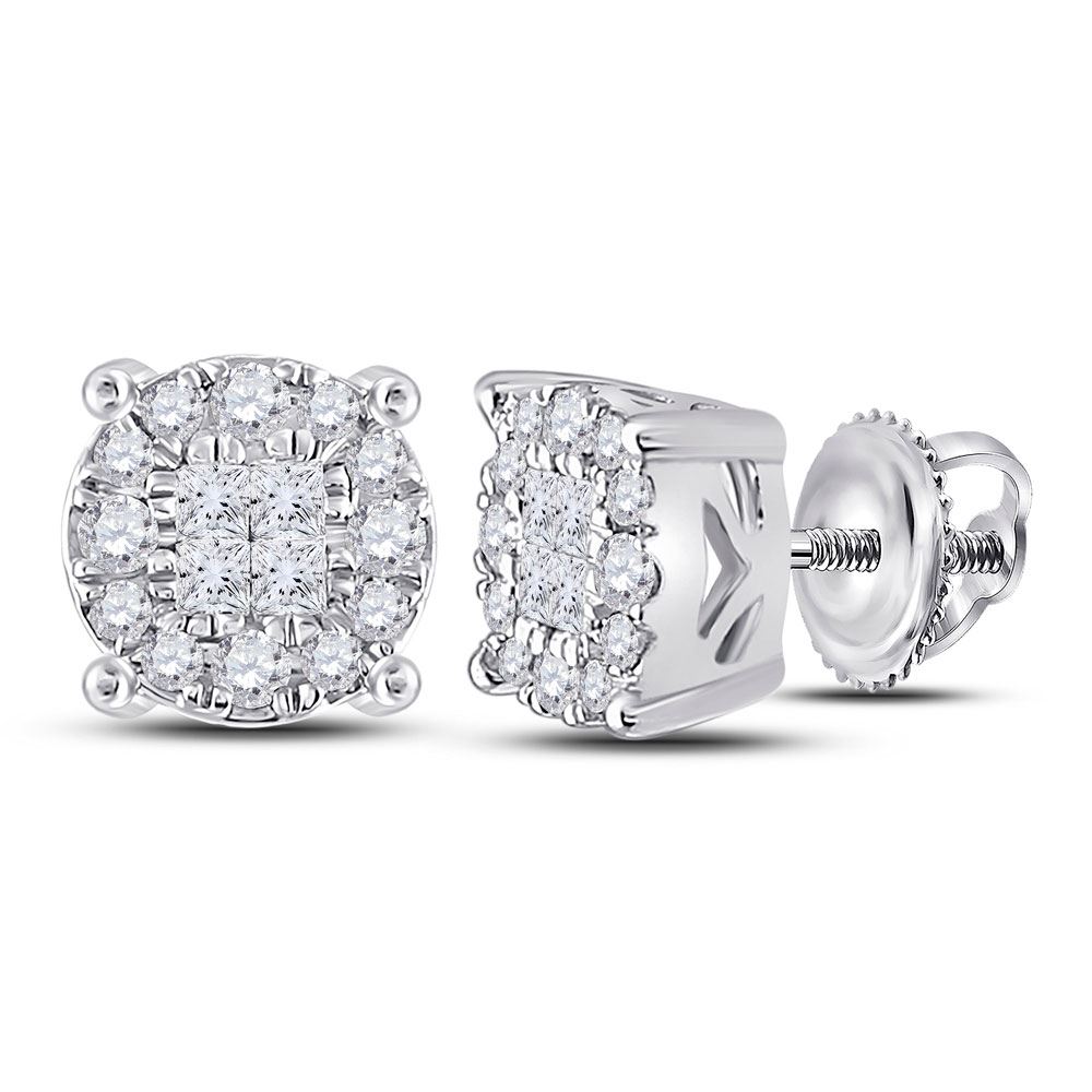 14kt White Gold Womens Princess Diamond Fashion Cluster Earrings 1/4 Cttw