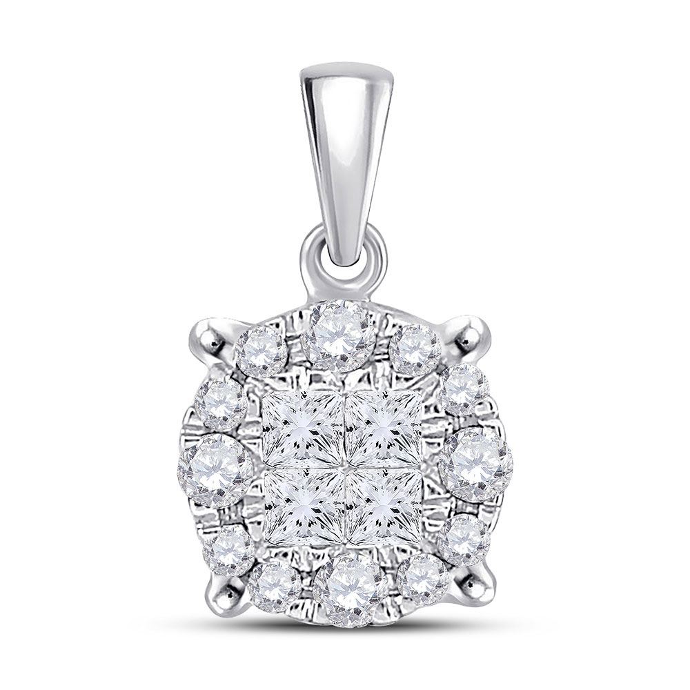 14kt White Gold Womens Princess Diamond Fashion Cluster Pendant 1/4 Cttw