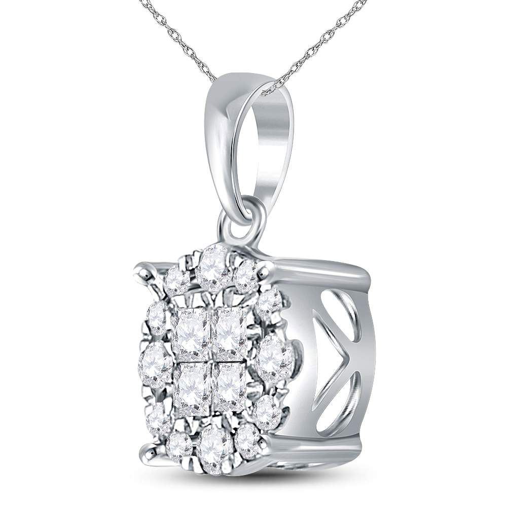 14kt White Gold Womens Princess Diamond Fashion Cluster Pendant 1/4 Cttw