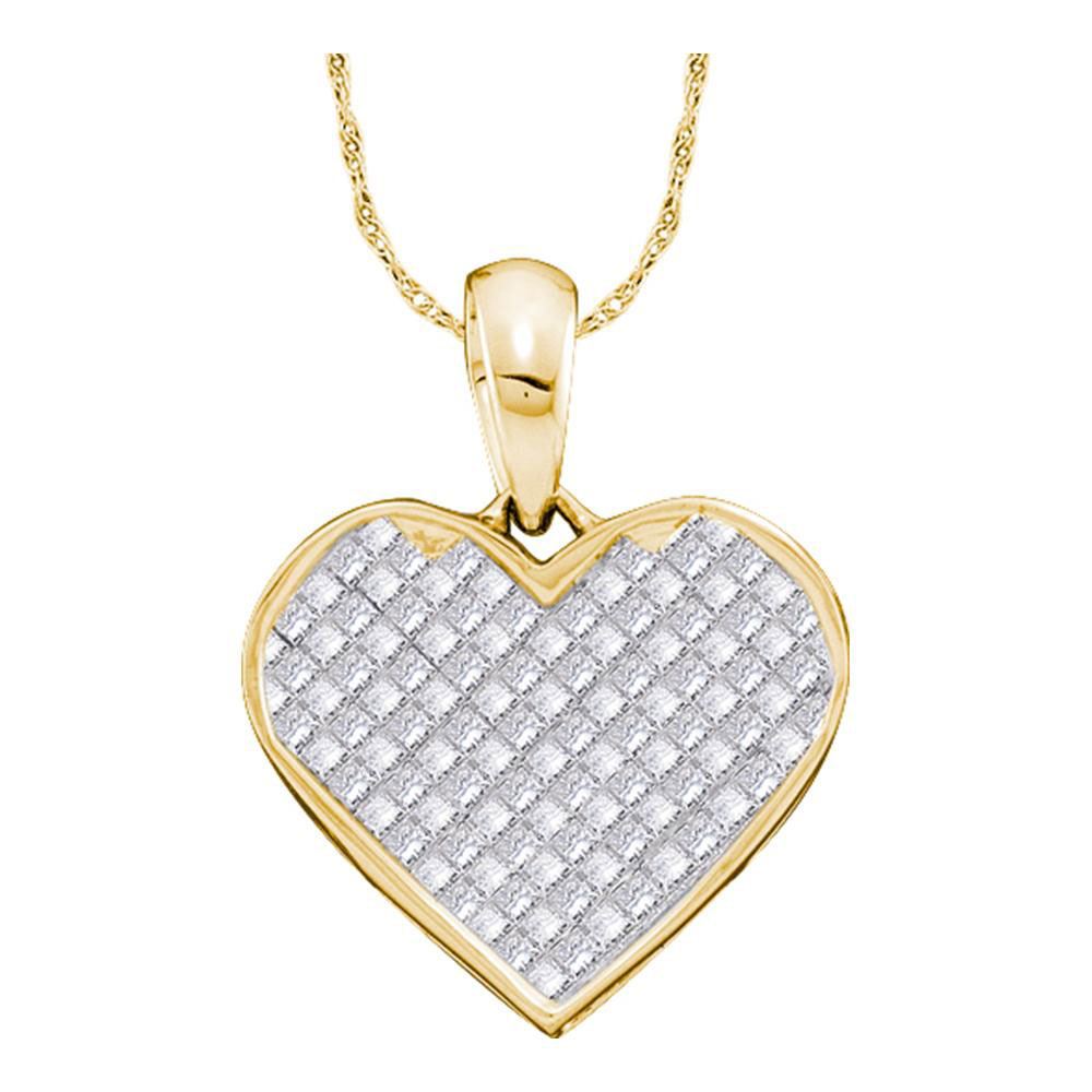 14kt Yellow Gold Womens Princess Diamond Heart Pendant 1/4 Cttw