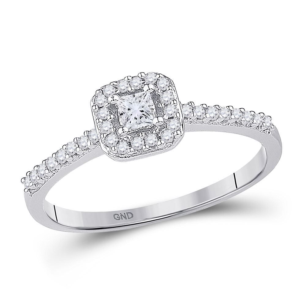 10kt White Gold Womens Princess Diamond Solitaire Square Halo Bridal Wedding Engagement Ring 1/4 Cttw