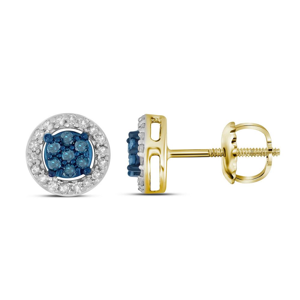 10k Yellow Gold Womens Round Blue Color Enhanced Diamond Cluster Stud Screwback Earrings 1/4 Cttw