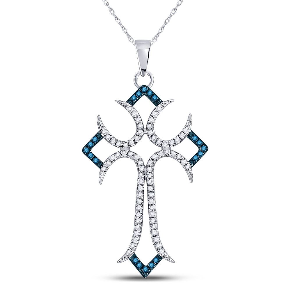 REF-15F5M ---- 1/4 CTW Round Blue Color Enhanced Diamond Flared Cross Pendant 10kt White Gold