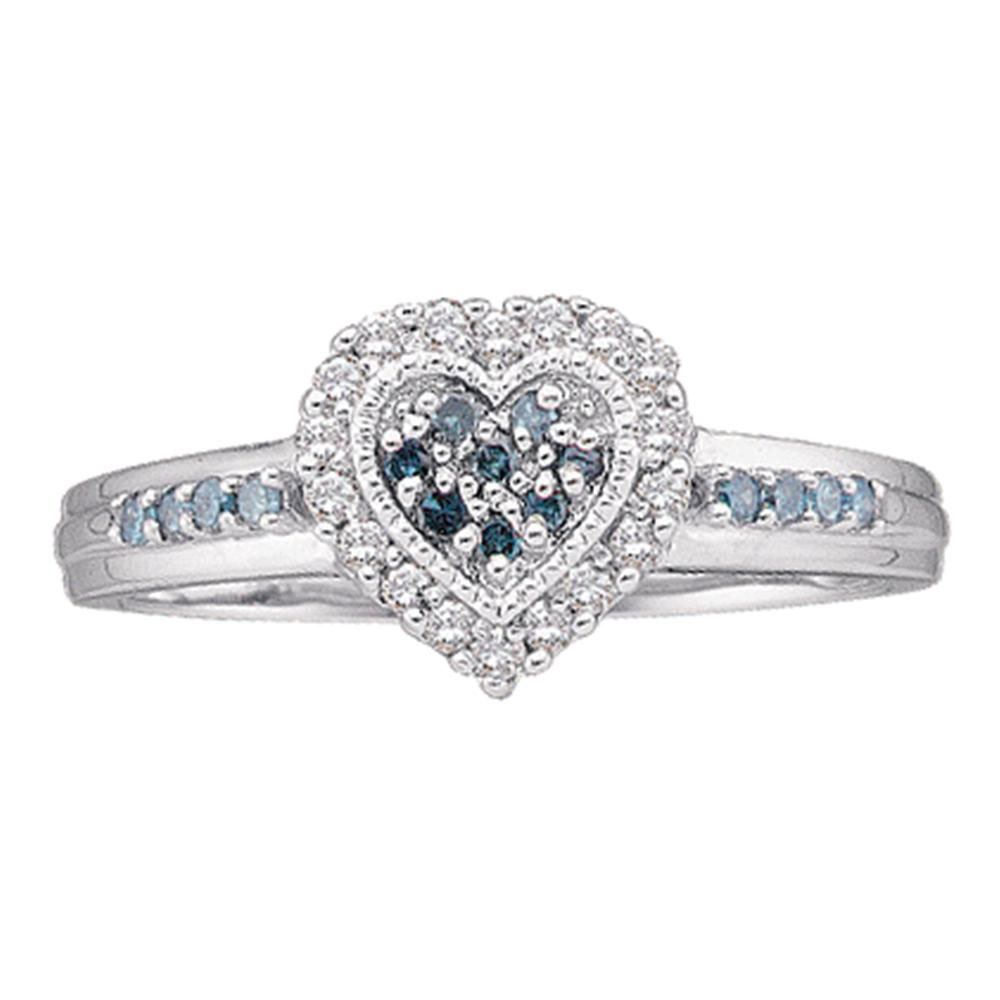 10kt White Gold Womens Round Blue Color Enhanced Diamond Heart Cluster Ring 1/4 Cttw