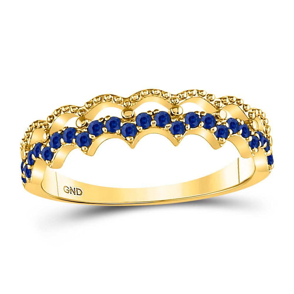 10kt Yellow Gold Womens Round Blue Sapphire Scalloped Stackable Band Ring 1/4 Cttw