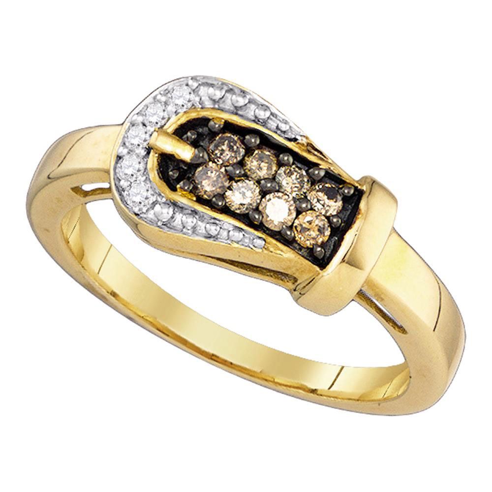 10kt Yellow Gold Womens Round Brown Diamond Belt Buckle Ring 1/4 Cttw