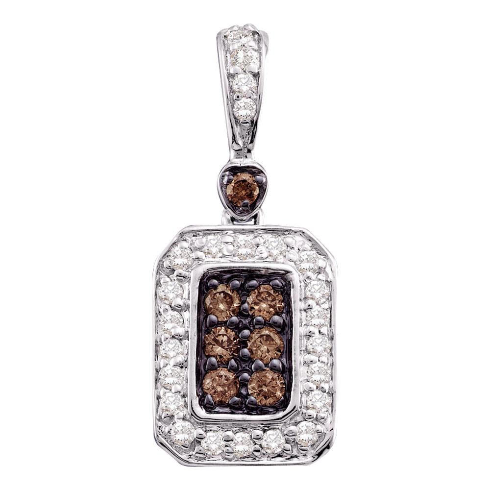 REF-20W3F ---- 1/4 CTW Round Brown Diamond Rectangle Cluster Pendant 10kt White Gold