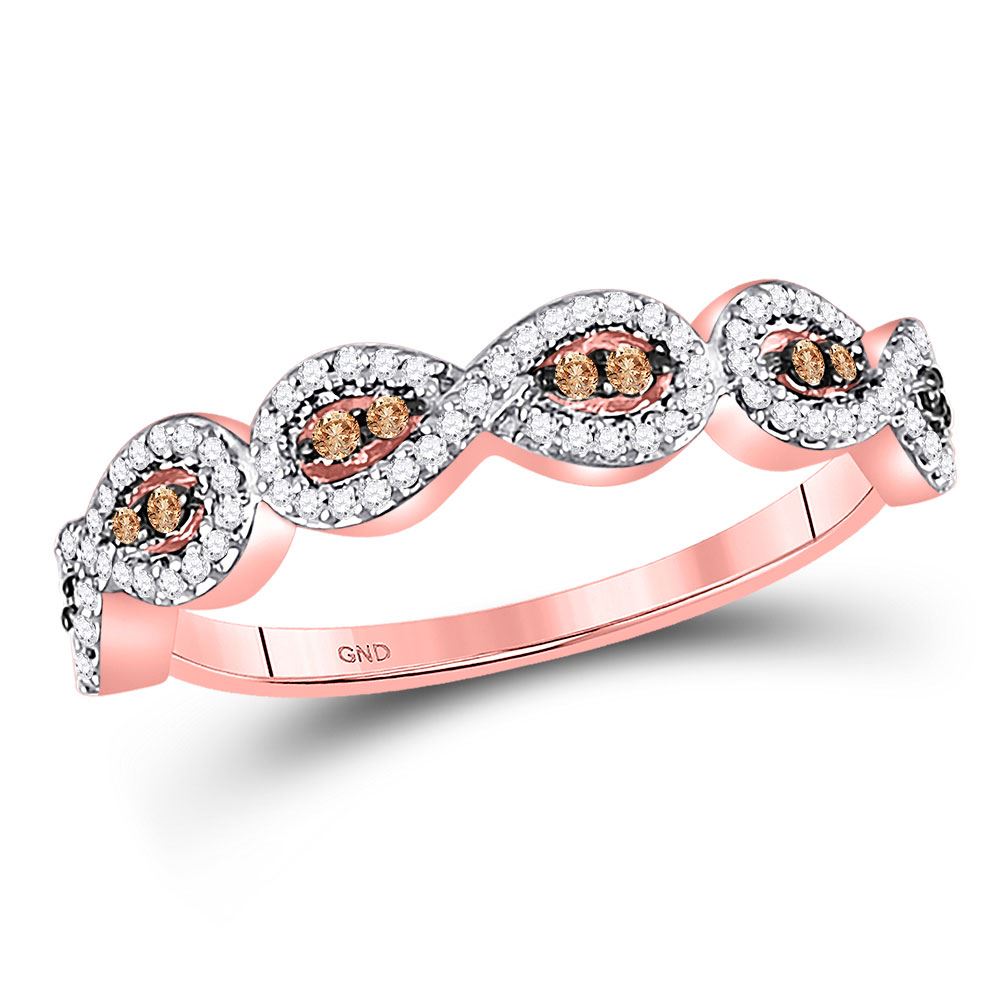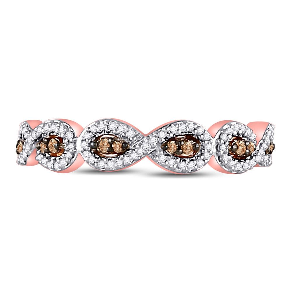 10kt Rose Gold Womens Round Brown Diamond Band Ring 1/4 Cttw
