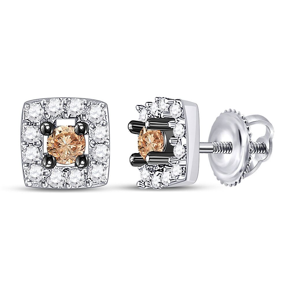 REF-11A9N ---- 1/4 CTW Round Brown Diamond Square Earrings 10kt White Gold