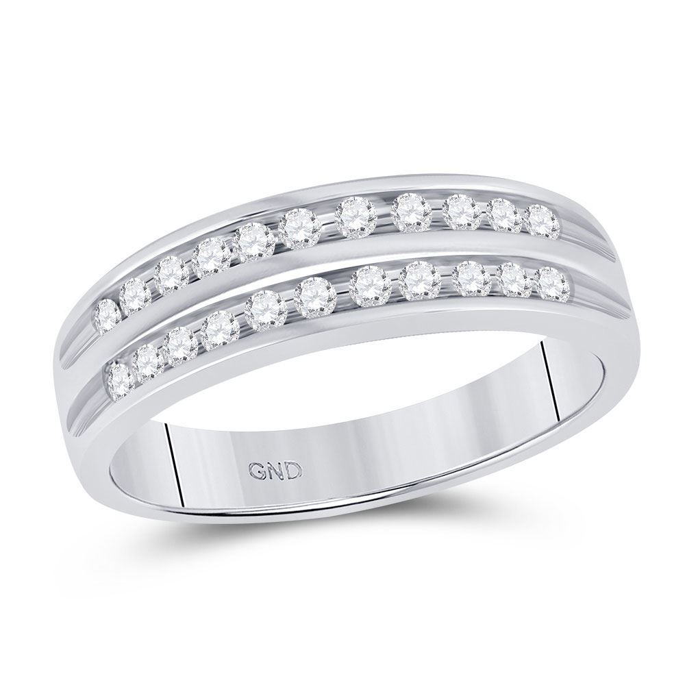 10kt White Gold Womens Round Diamond 2-Row Fashion Band Ring 1/4 Cttw