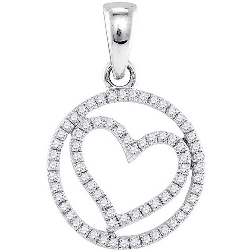 10k White Gold Round Diamond Womens Circular Captured Heart Circle Pendant 1/4 Cttw