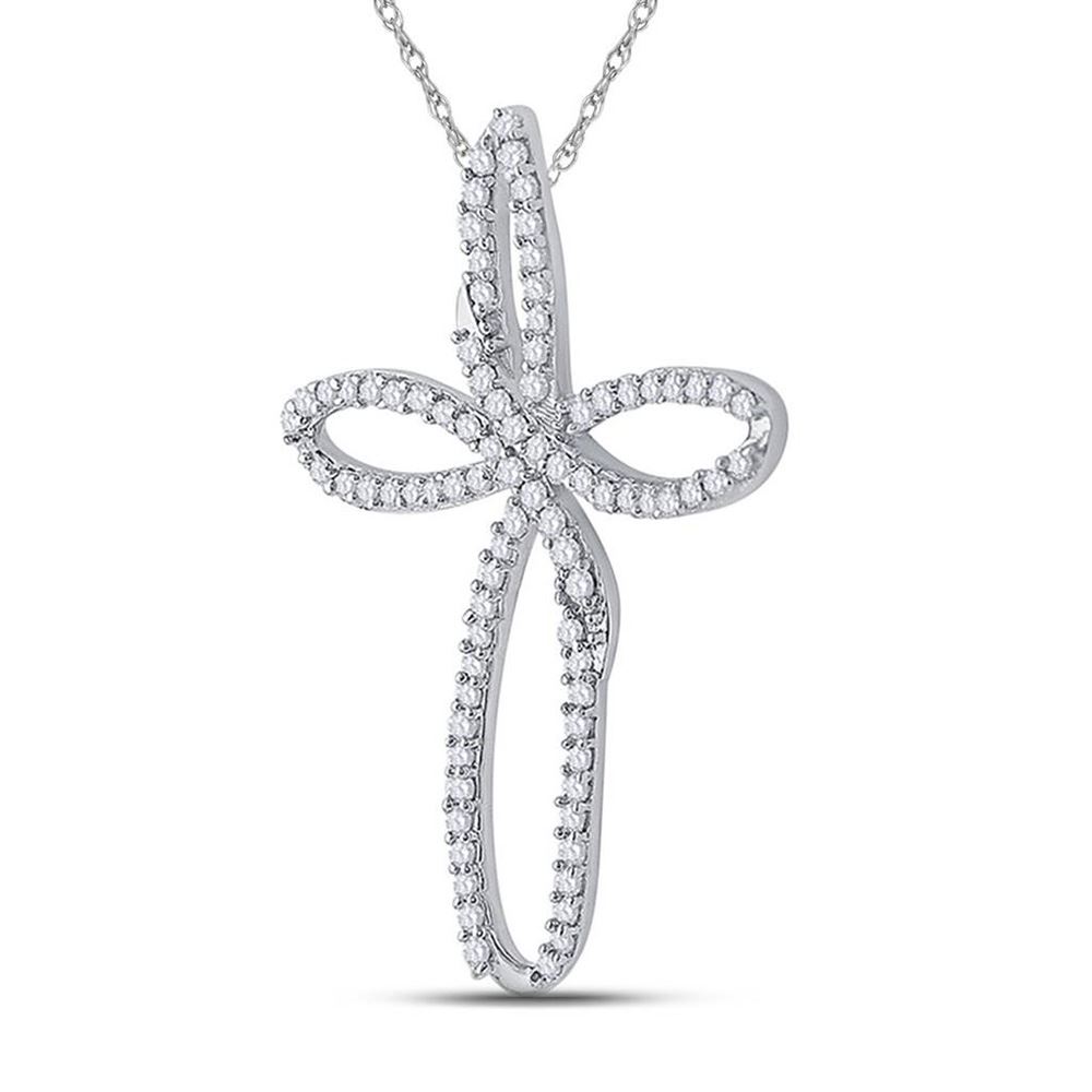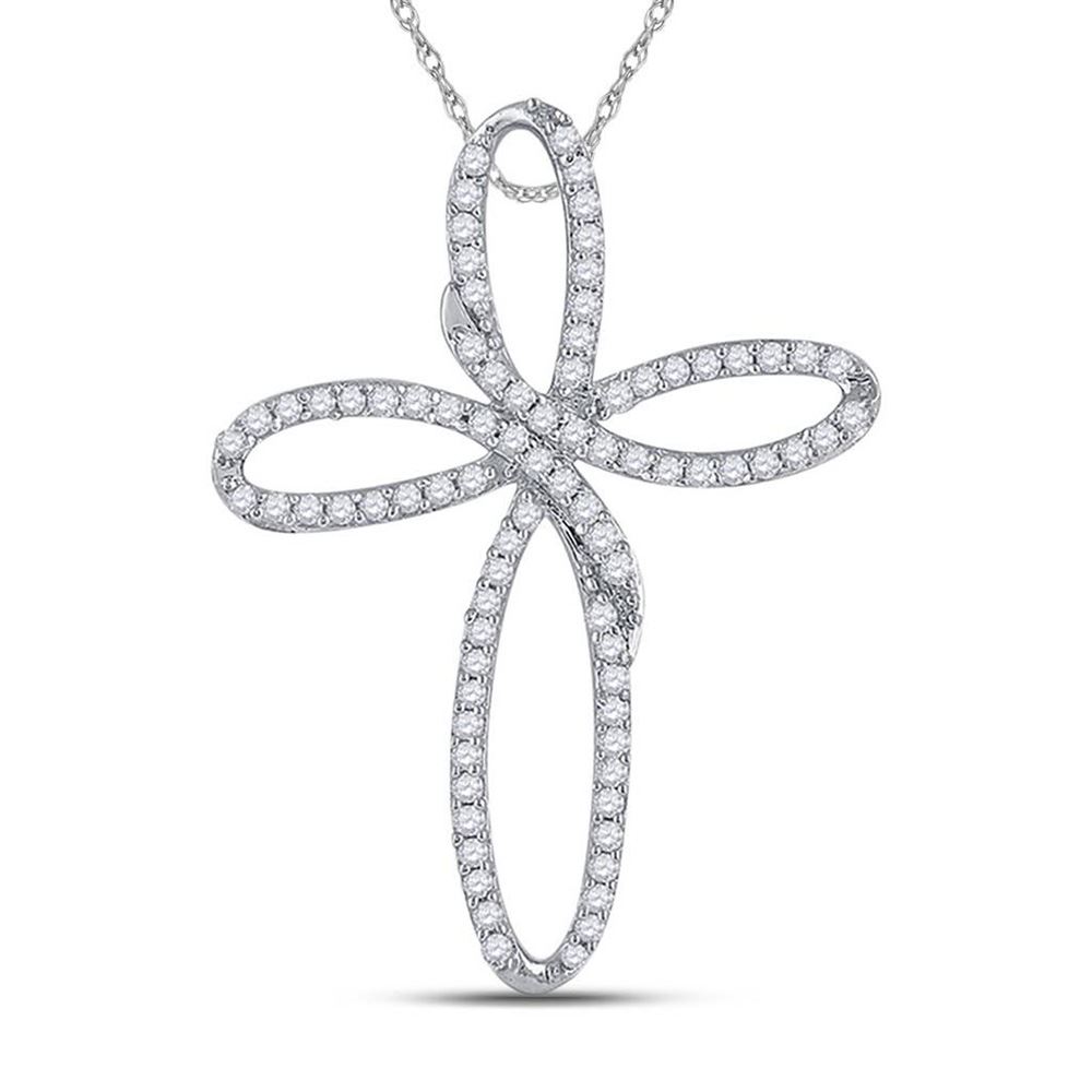 10k White Gold Diamond Womens Cross Religious Open-center Pendant 1/4 Cttw