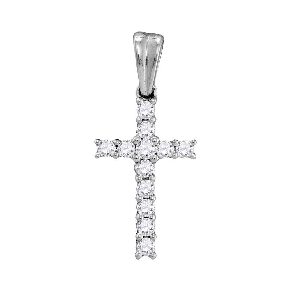 REF-10H8W ---- 1/4 CTW Round Diamond Cross Religious Pendant 10kt White Gold